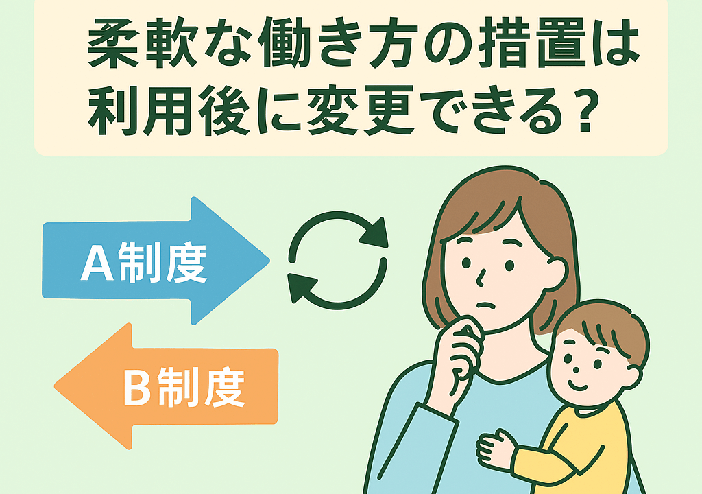 今回は、3歳以上小学校就学前までの子を養育する労働者に対して講じられる「柔軟な働き方を実現するための措置」が、利用開始後に変更できるのかどうかについて解説します。
