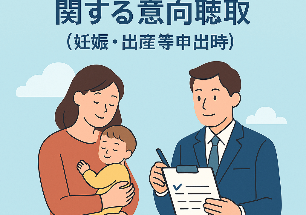 従業員やその配偶者から妊娠・出産予定の申出があった場合、事業主には「仕事と育児の両立に関する意向」を聴取する義務があります。これは労使協定の有無にかかわらず、法令上の義務とされています。