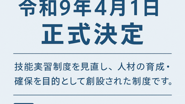 労務管理 育成就労制度 「令和9年4月1日」から施行が正式決定 2025年10月5日 hiraokatakuya https://smile-office-sr.com/wp-content/uploads/2025/03/hiraoka_rogo-02.png ひらおか社会保険労務士事務所