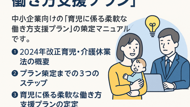 労務管理 【ブログ記事】「育児に係る柔軟な働き方支援プラン」策定マニュアルのご案内 2025年10月6日 hiraokatakuya https://smile-office-sr.com/wp-content/uploads/2025/03/hiraoka_rogo-02.png ひらおか社会保険労務士事務所