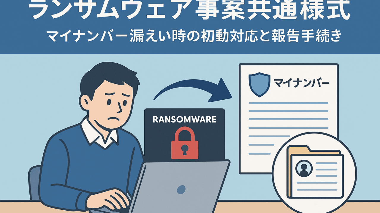 マイナンバー(特定個人情報)を取り扱う企業・団体が、サイバー攻撃によって情報漏えいのおそれが生じた場合に使用するのが、「ランサムウェア事案共通様式」です。