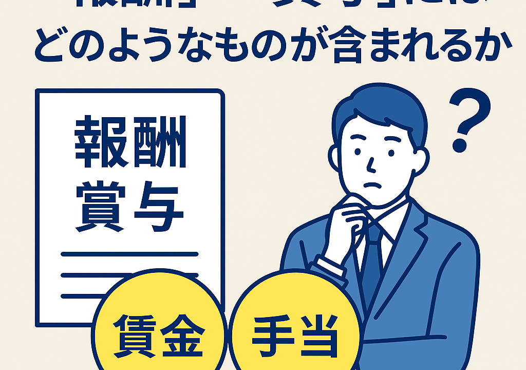 - 「報酬」や「賞与」は、労働の対価として経常的に受け取るものすべてが対象。