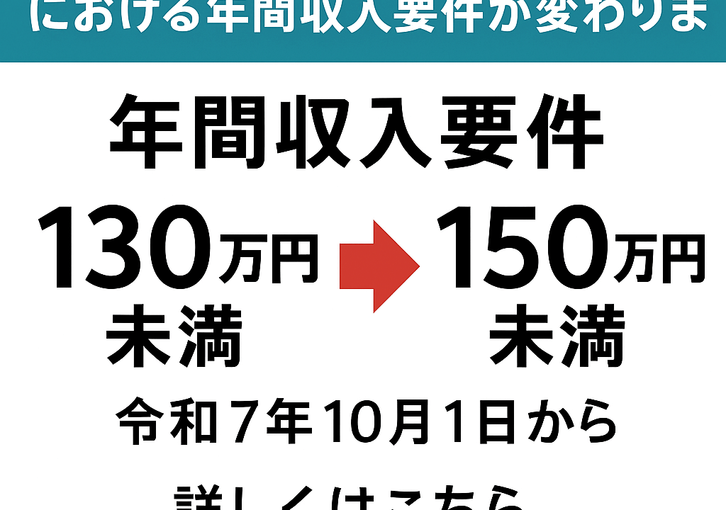 ➡ 令和7年10月以降は「150万円未満」であれば扶養に認定可能となり、扶養に戻ることができます。