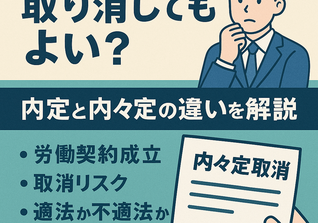 今回は、「内々定」と「内定」の違いを理解しながら、適法・不適法の判断ポイントを解説します。