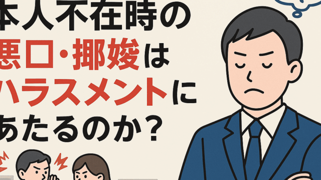 判例 【判例解説】本人不在時の悪口・揶揄はハラスメントにあたるのか? 2025年10月3日 hiraokatakuya https://smile-office-sr.com/wp-content/uploads/2025/03/hiraoka_rogo-02.png ひらおか社会保険労務士事務所