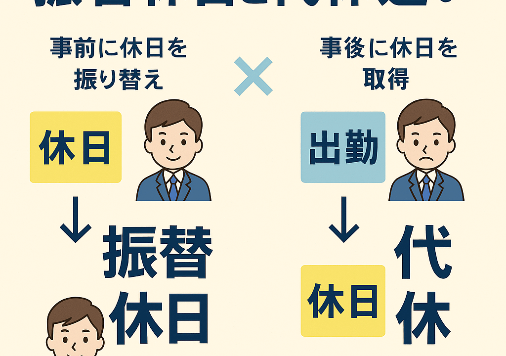 「振替休日と代休の違い」や「取得期限のルール」を社内で明確にしておくことが重要です。
