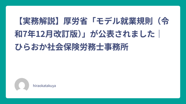 【実務解説】厚労省「モデル就業規則(令和7年12月改訂版)」が公表されました|ひらおか社会保険労務士事務所
