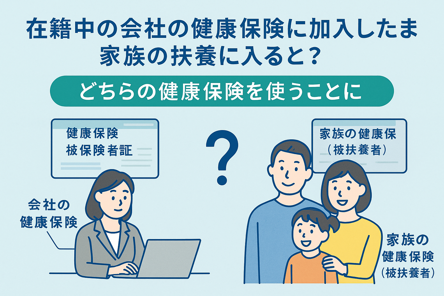 労務管理 【実務解説】会社の健康保険に加入したまま家族の扶養に入ると?どちらの保険が使われるのか|ひらおか社会保険労務士事務所 2025年12月1日 hiraokatakuya https://smile-office-sr.com/wp-content/uploads/2025/03/hiraoka_rogo-02.png ひらおか社会保険労務士事務所
