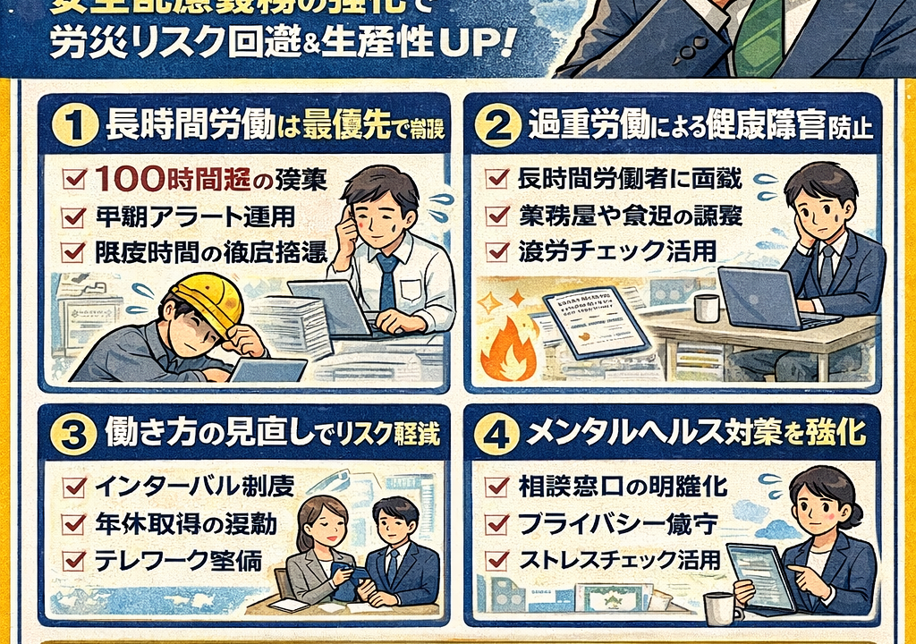 企業には、従業員が健康を損なうことなく安全に働ける環境を整える