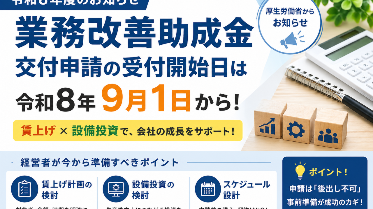 【令和8年度】業務改善助成金の受付開始は9月1日から|今から準備すべきポイントとは?|ひらおか社会保険労務士事務所