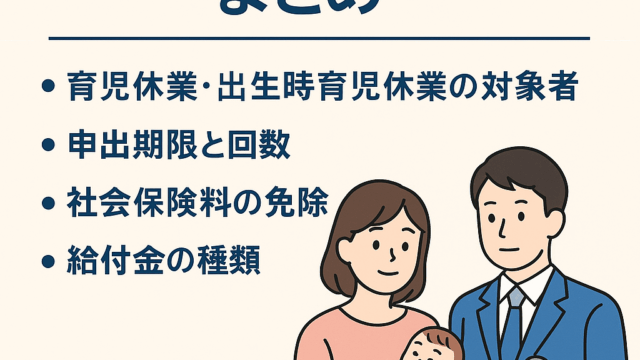 労務管理 【実務に役立つ】育児休業制度と手続きのポイントまとめ 2025年10月9日 hiraokatakuya https://smile-office-sr.com/wp-content/uploads/2025/03/hiraoka_rogo-02.png ひらおか社会保険労務士事務所